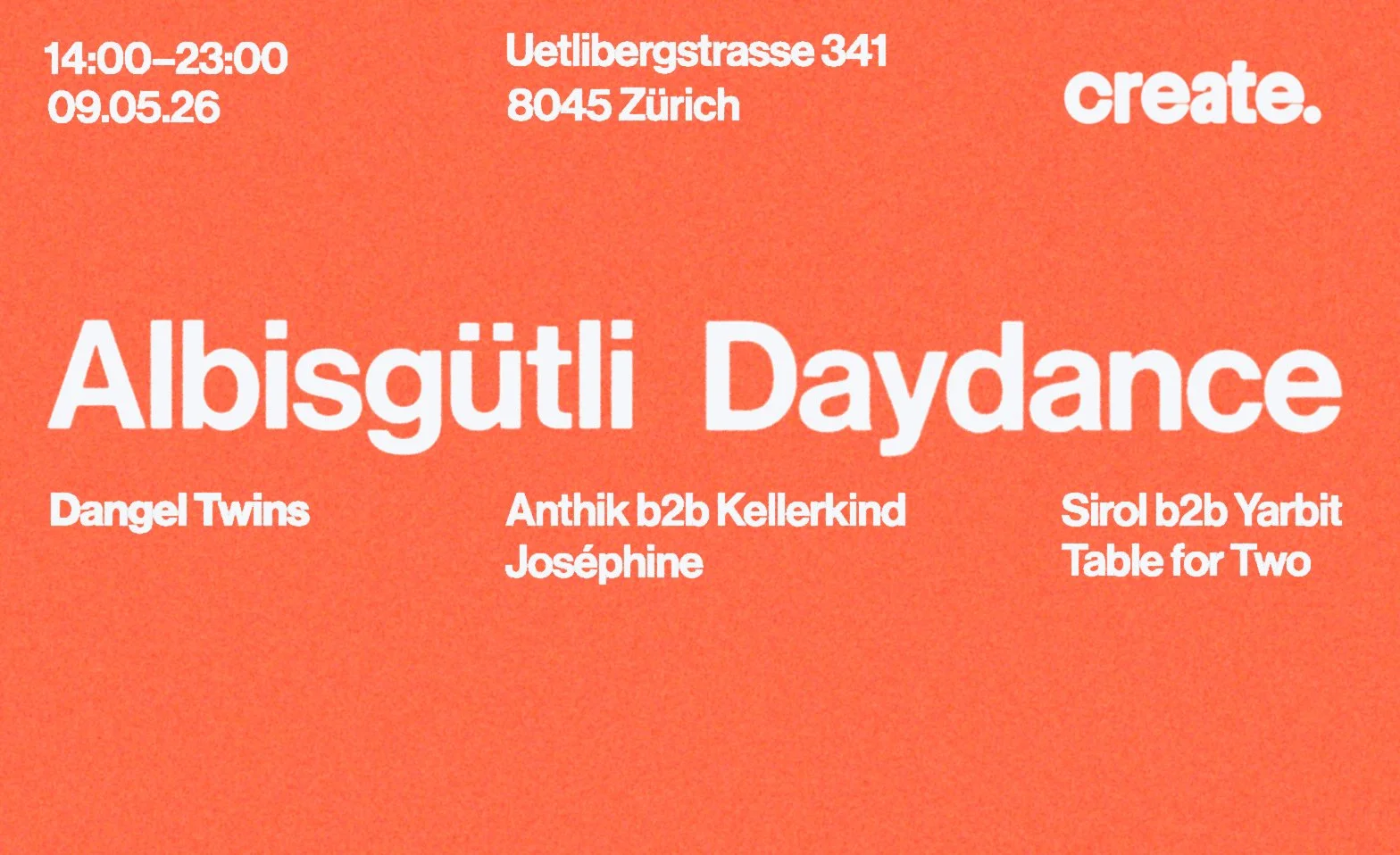 "CREATE." ist ein frisches, eigenständiges Eventlabel aus Zürich.